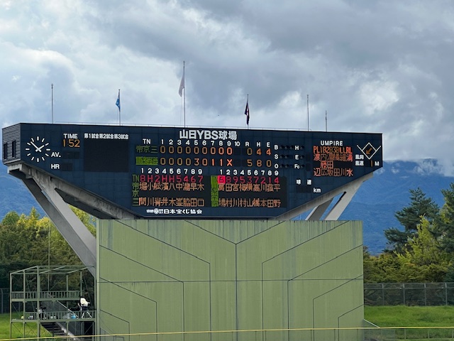 10月6日(日)山日YBS球場にて、秋季大会の決勝戦、山梨学院高校との対戦が行われました。結果0-5で敗れました。今大会、1点差による勝利が3試合あり、苦しい展開の中でも打開しようとする姿に生徒達の成長を感じました。