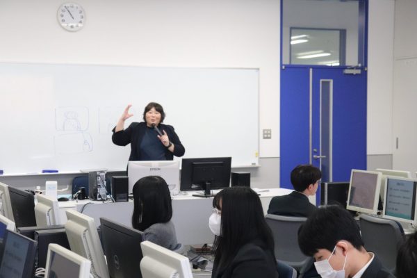 生徒たちは写真の切り抜きや色調補正など、普段触れることの少ない専門的なソフトに興味津々で、積極的に作業を進めていました。短い時間の中でも工夫を凝らした作品が多数完成し、学校PRの視点を踏まえた表現を学ぶ貴重な機会となりました。