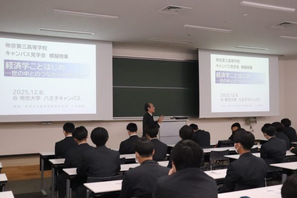 続いて、模擬授業として「教育学部」「経済学部 経営学科」「医療技術学部 健康スポーツ学科」に分かれ、それぞれ大学の先生による講義を受けました。専門的な内容に触れる貴重な機会となりました。