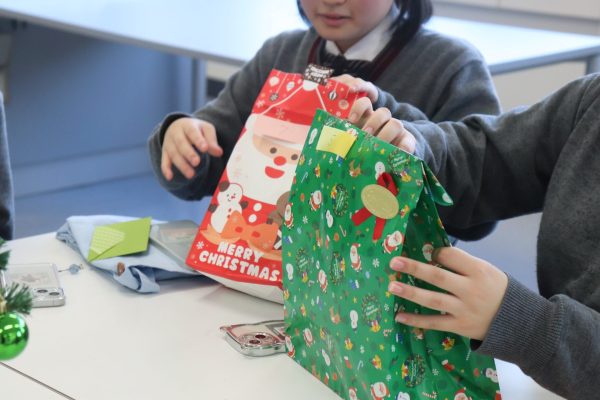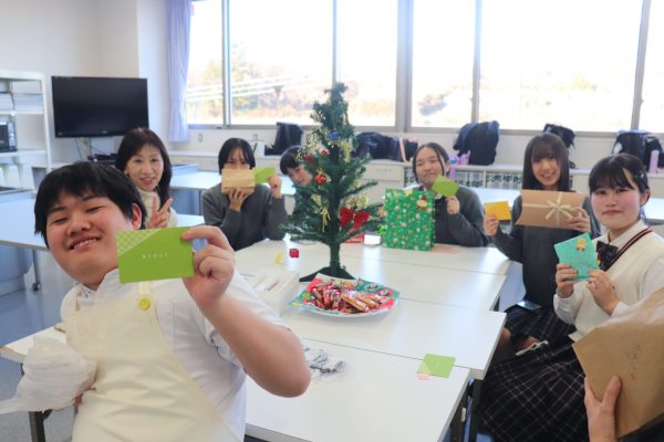 自分たちで果物などをのせてデコレーションをして、オリジナルのクリスマスケーキを作ったり、プレゼント交換ではお菓子の詰め合わせや顧問の先生手作りのトートバッグなどがあり、生徒たちはドキドキした様子でプレゼントを開封していました。
