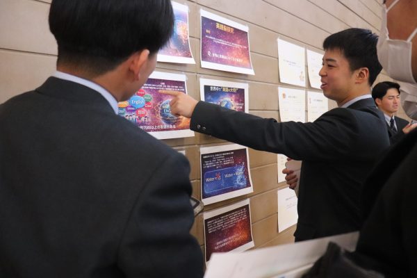 2月12日(木)に、2年生特選コースの探究中間発表がおこなわれました。生徒たちはそれぞれの興味関心や、将来就きたい職業に関するテーマを設定し、資料収集などに取り組んできました。印刷したスライドを用いながら、研究結果や考察など現時点での成果を発表するだけでなく質疑応答に答えたり、質問から新たな課題を発見したりと、発表者、聞き手ともに有意義な時間となりました。