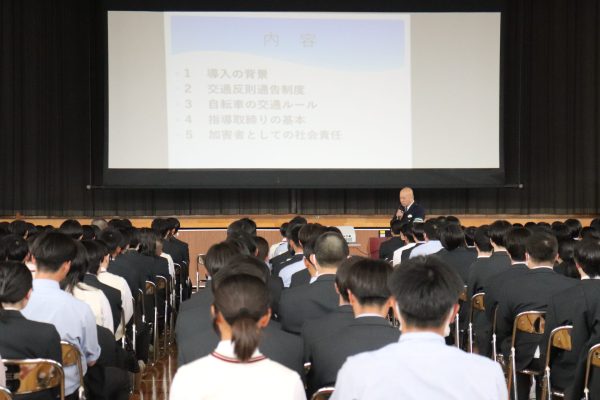 4月17日(金)、北杜警察署の方をお招きし、全校生徒を対象に交通講話を実施していただきました。