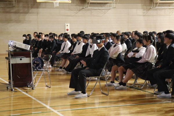 また、代表の生徒3名はVR体験をし、自転車の「ながら運転」や「一時不停止」などによる危険を体感しました。